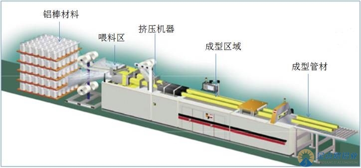 鋁型材是鋁棒通過熱熔、擠壓、從而得到不同截面形狀的鋁管材料。成型過程主要包括熔鑄,擠壓,切割,CNC洗切,表面預處理,上色,5個過程。